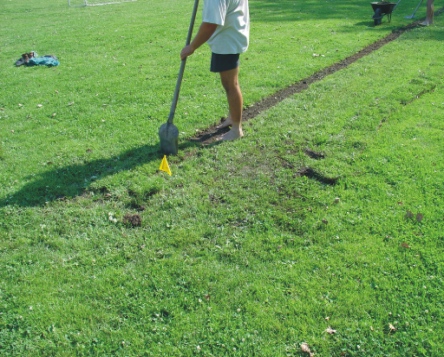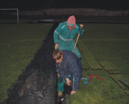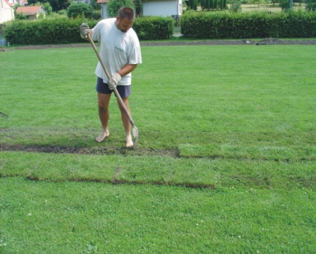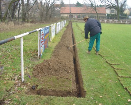 zde se pokládají drny zpět, je nutná pečlivá příprava podloží |