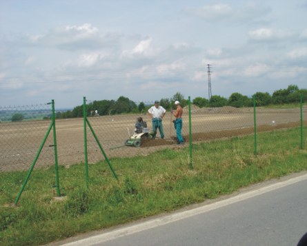 Pet lahve hotovo, vzadu ještě zasypáváme a hutníme |
