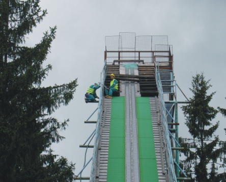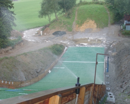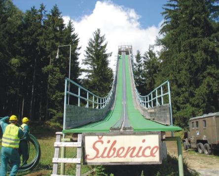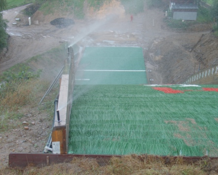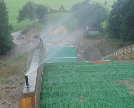 zkouška menších trysek v horní části doskočiště (spuštění