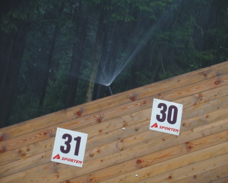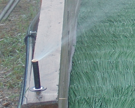 postřikovače R50 na spodmí části doskočiště |