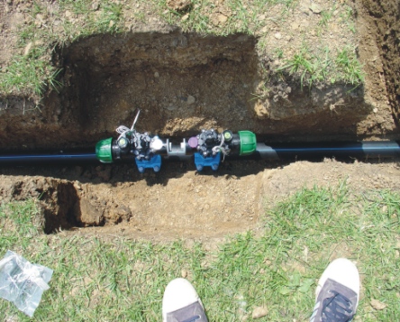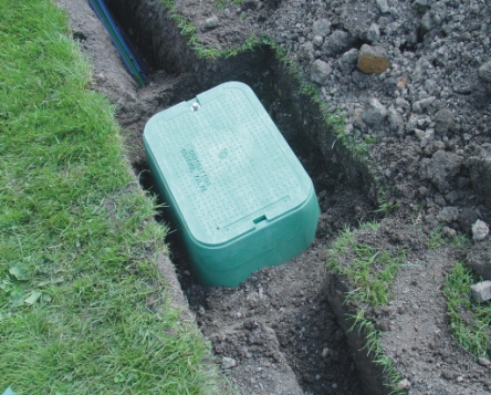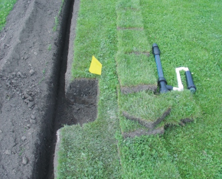 obrázku je detail usazeného postřikovače a ventilové šachty |