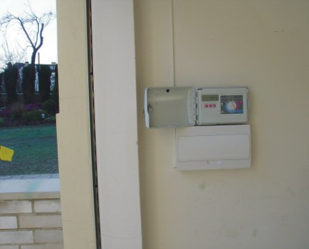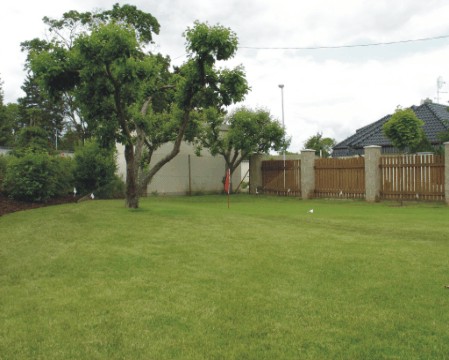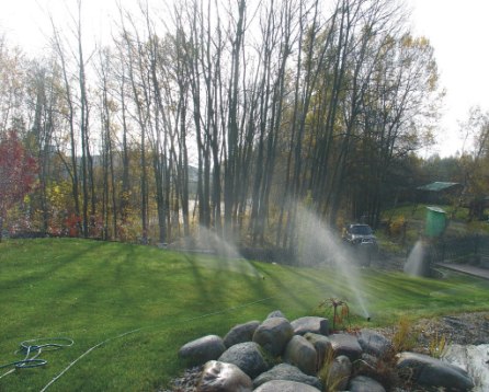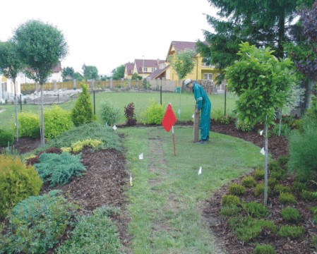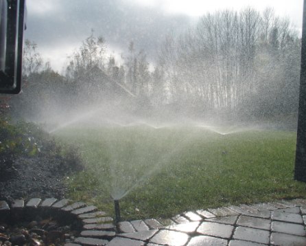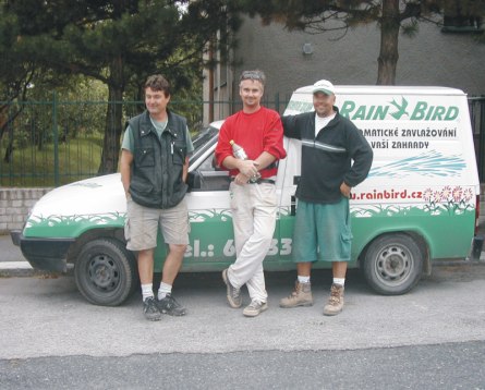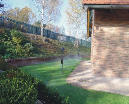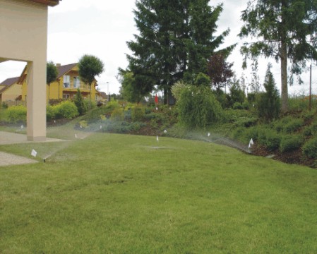 rotační postřikovače 3504SAM, před zahradním domkem |