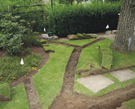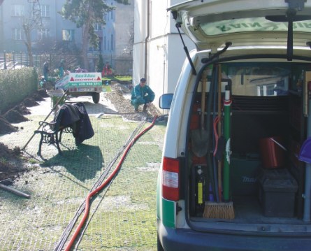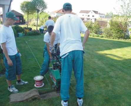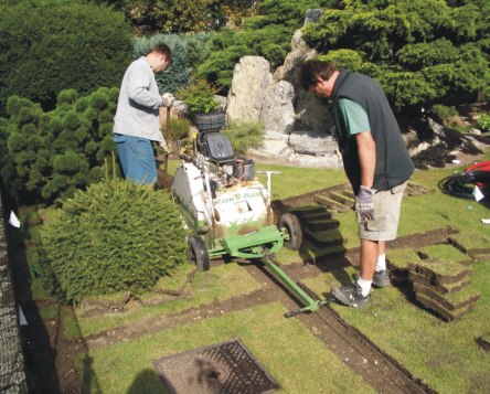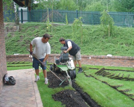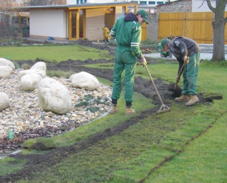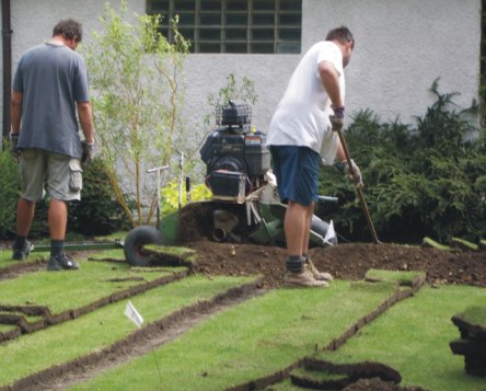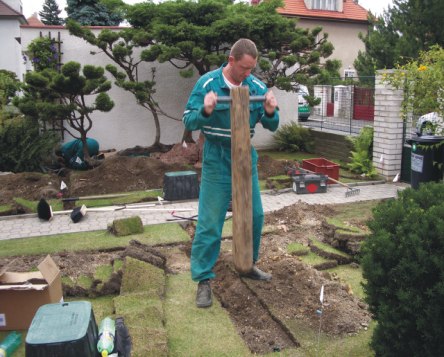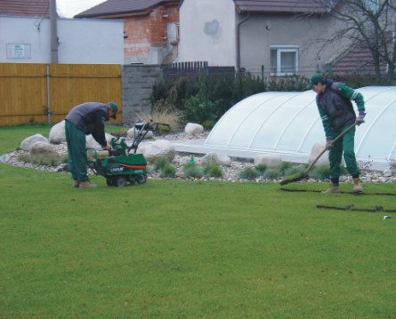hutnění a usazení drnů je další důležitou operací úklid zahrady |