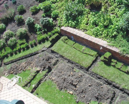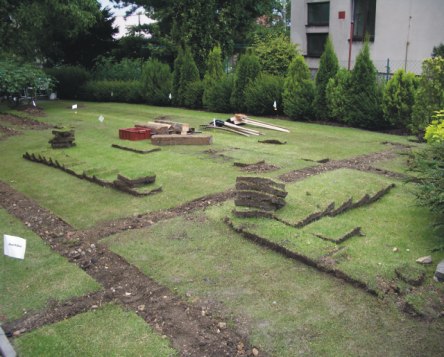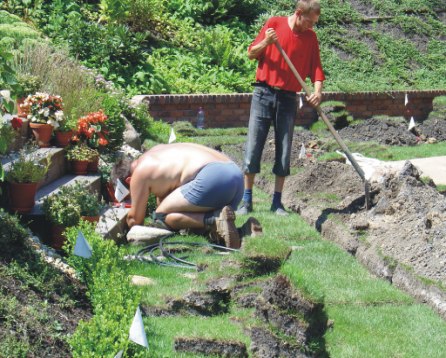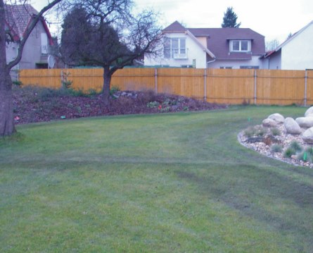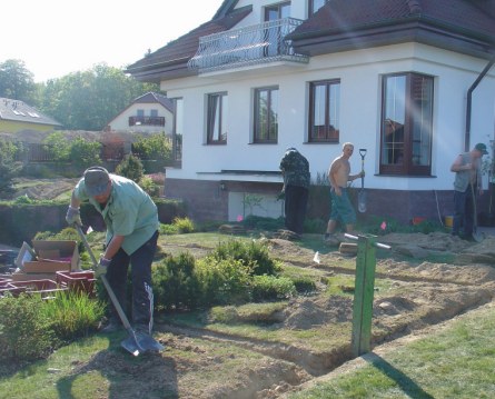 zatímco na pravé straně zahrádky se dolaďují výkopy, vlevo