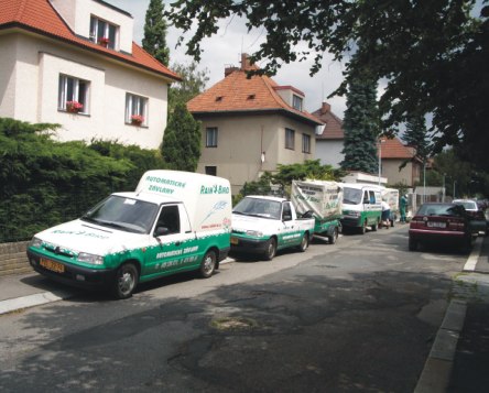 právě probíhá odčerpání vody ze zásobníku, za Nissanem je vidět